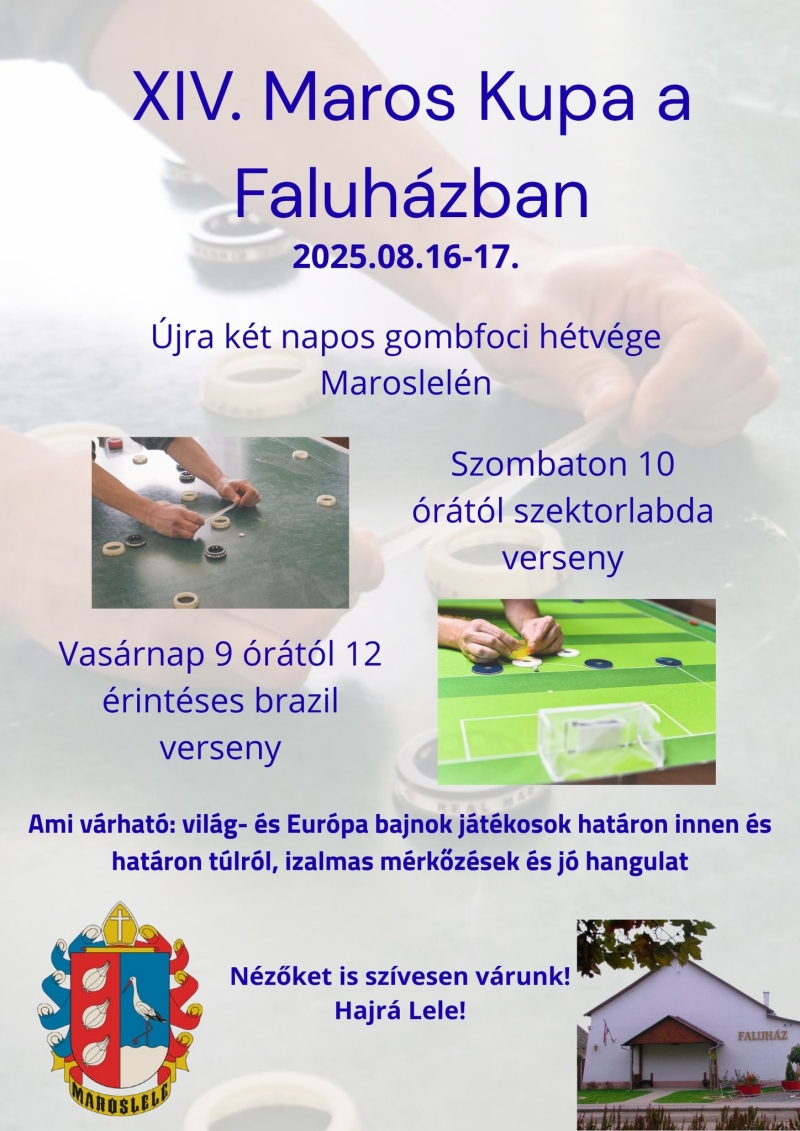 Helyszín: Maroslele Faluház, 6921 Maroslele, Szabadság tér 5.